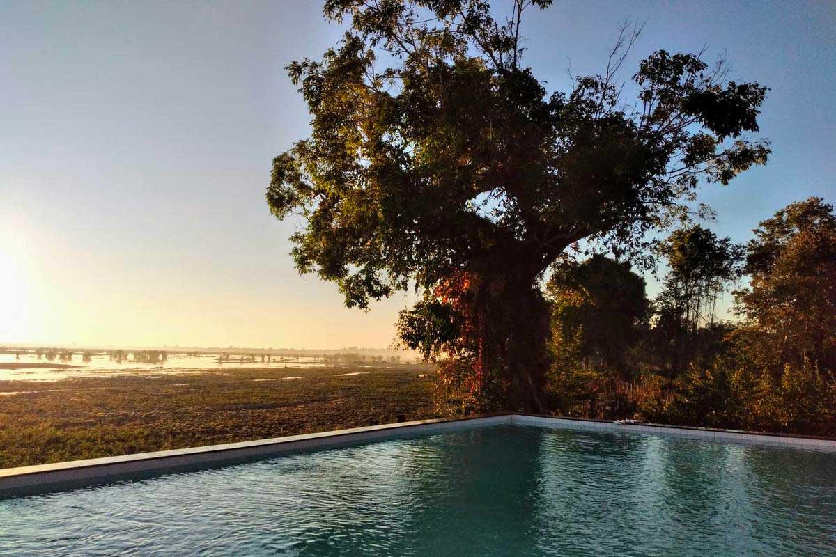 Kingfisher Ecolodge offre un confort et une expérience intime avec la nature exotique, au coeur d’un environnement unique.Il répond aux attentes des voyageurs en quête d’un nouveau type de tourisme, en réalisant des expériences uniques et des instants de détente comme regarder un ciel noir parsemé d’étoiles, admirer simplement les éléphants et les buffles d’eau dans leurs mouvements lents tout en suivant, au loin, une volée d’oiseaux dans le ciel bleu du Laos.Il dispose de six chambres doubles, en bungalows en bois sur pilotis avec de spacieuses vérandas. Ils sont situés en zones humides et immergés dans la flore sauvage de la région. Les matériaux de construction traditionnels et la réalisation ont été mélangés à une architecture et une conception moderne.Les façades principales des chambres ont été entièrement construites en verre pour donner l’opportunité aux clients d’admirer les paysages et le décor naturel afin de ressentir cet incomparable sensation d’espace. Les chambres ont été construite en bois et bambou. L’éclairage est fourni à la fois par un système solaire et un réseau électrique. Toutes les chambres disposent d’un ventilateur et de prises électriques.Le restaurant est composé de deux étages où des plats locaux et occidentaux sont servis. Ils sont réalisés principalement avec des aliments biologiques, plantés non loin de l’établissement, en zone humide.A Kingfisher Ecolodge il est possible de se connecter à internet et d’utiliser le téléphone pour des appels à l’international.